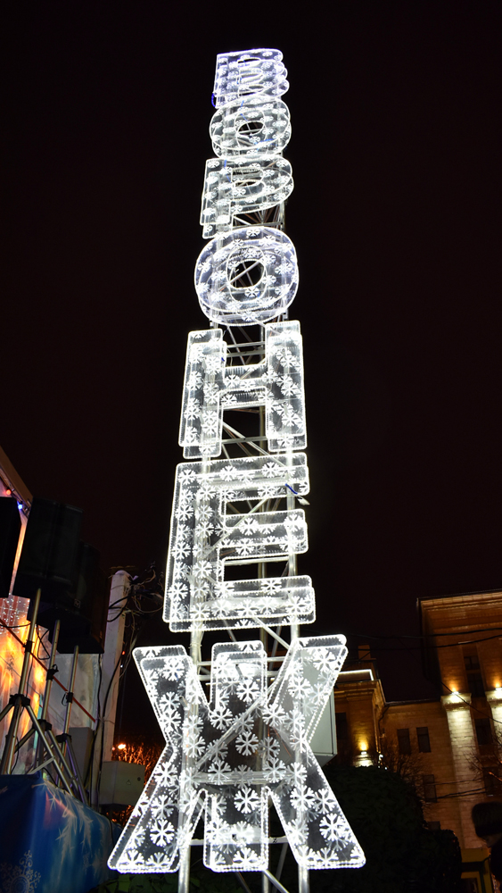 Всю ночь праздничное настроение создавали яркая иллюминация, шары, музыка. Кроме того, на площади организована ярмарка, где все желающие могут купить сувениры и угощения.