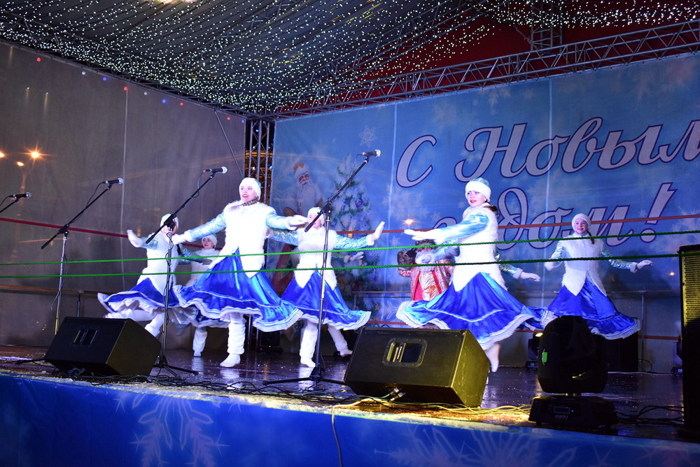 Вместе с выступающими на сцене артистами, воронежцы пели новогодние песни, а творческие коллективы на уличной сцене исполняли свои эстрадные номера.