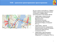 Детально Вадим Кстенин остановился и на проблеме регрессивных территорий города, вопросы развития которых позволит решить строительство легкорельсового транспорта на принципах транзитно-ориентированного проектирования. Оно позволяет создавать зоны с максимальным доступом к общественному транспорту.