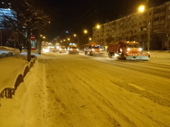 В четверг в дневное время суток районные комбинаты благоустройства направили на уборку дорог 217 единиц техники (в том числе 27 привлечённой), а в прошедшую ночь – уже 228 машин (из них - более 60 привлечённых). В результате активной работы удалось только за одну ночь вывезти с городских улиц 5951 кубометр снега (более 500 самосвалов), основные магистрали расчищены до асфальта (с начала зимнего периода это самый большой объём вывезенного снега за одну ночь).