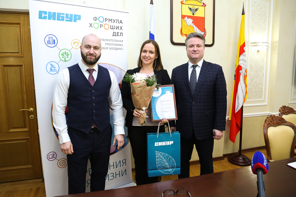 1 марта глава Воронежа Вадим Кстенин и директор по экономике и финансам АО «Воронежсинтезкаучук» (ПАО «Сибур Холдинг») Дмитрий Богданов поощрили победителей благотворительной программы «Формула хороших дел 2019 года», которая проводится уже 4 год подряд этим промышленным предприятием.