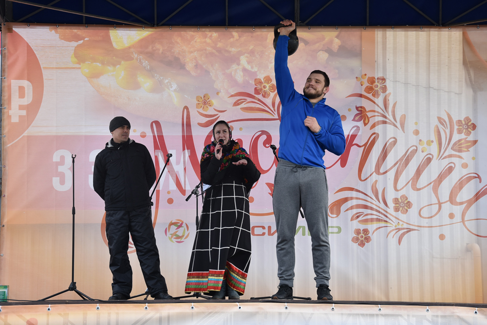 Жители, пришедшие проводить зиму и радостно встретить весну, могли не только полакомиться традиционным угощением и насладиться народными песнями и плясками, но и попробовать свои силы в масленичных конкурсах и забавах – подъем гирь, перетягивания, хороводы с лентами и других.