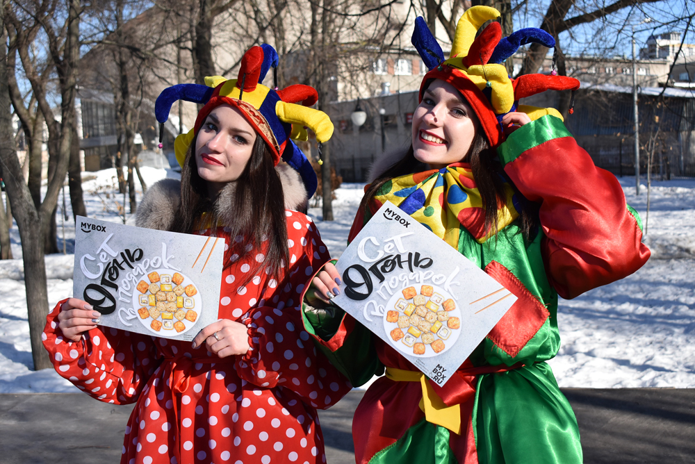 Праздничное настроение создавали по-настоящему весенняя оттепель, музыка, воздушные шары, конкурсы, народные костюмы и, конечно, традиционные лакомства. Здесь можно было отведать блины с разнообразными начинками: со сметаной, сахаром, которые раздавались бесплатно всем желающим.