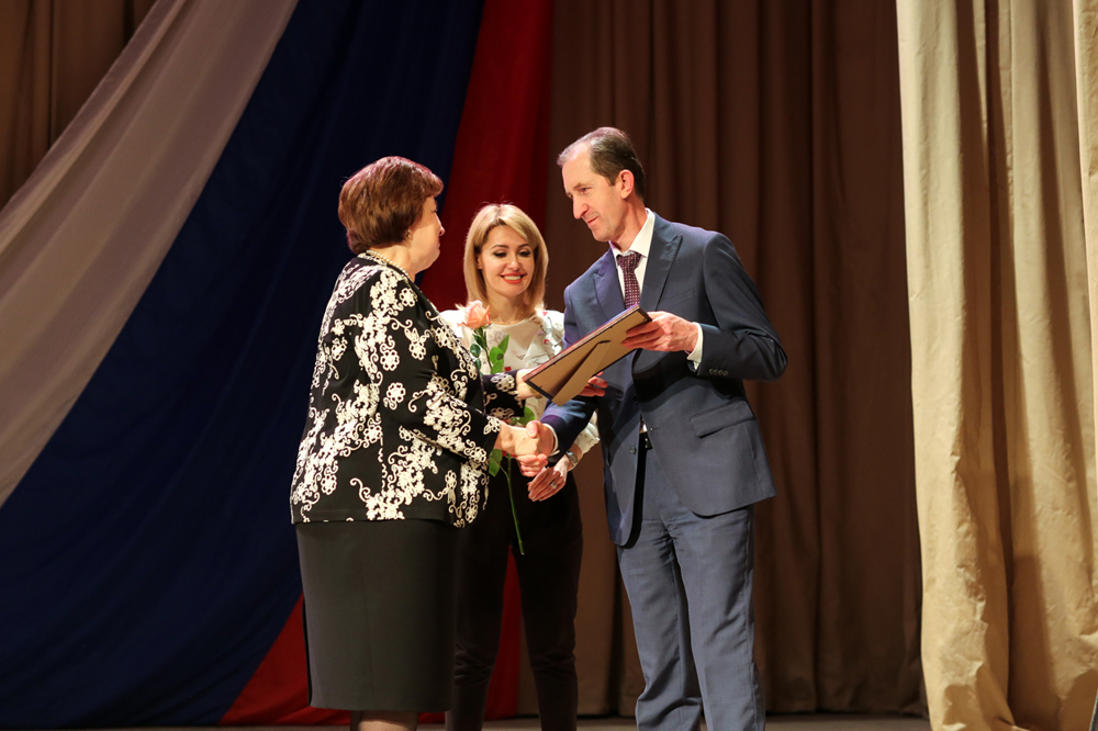 С поздравительной речью к собравшимся в зале обратился первый заместитель главы администрации по городскому хозяйству Сергей Петрин.