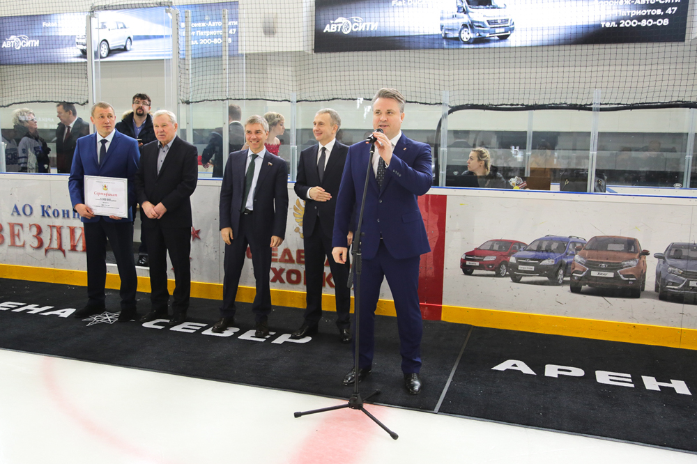 Поздравляя собравшихся, Сергей Трухачев отметил, что хоккей – это спорт для настоящих мужчин, который закаляет характер, развивает силу, выносливость и стойкость, и создание новой школы – это очередной шаг в развитии воронежского хоккея. По поручению губернатора Воронежской области Александра Гусева он вручил директору школы Виктору Дронову сертификат на 5 миллионов рублей для приобретения необходимого оборудования.