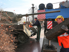 В заключение церемонии с помощью специальной техники танк был бережно снят с постамента у «Музея-диорамы» и отправился на вагоноремонтный завод, где он будет отреставрирован. К концу апреля, после завершения патриотического путешествия, обновленный Т-34 вернется на место своей постоянной дислокации и встретит 74-ую годовщину Победы в Великой Отечественной войне в Воронеже.