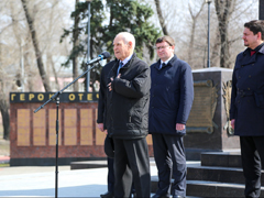 Ветеран Великой Отечественной войны, Почетный гражданин города, полковник в отставке Николай Николаевич Борисов тоже пришел на церемонию, чтобы проводить боевую машину в дорогу и пожелать счастливого пути.