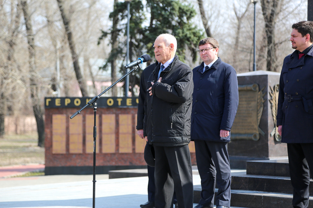 Ветеран Великой Отечественной войны, Почетный гражданин города, полковник в отставке Николай Николаевич Борисов тоже пришел на церемонию, чтобы проводить боевую машину в дорогу и пожелать счастливого пути.