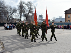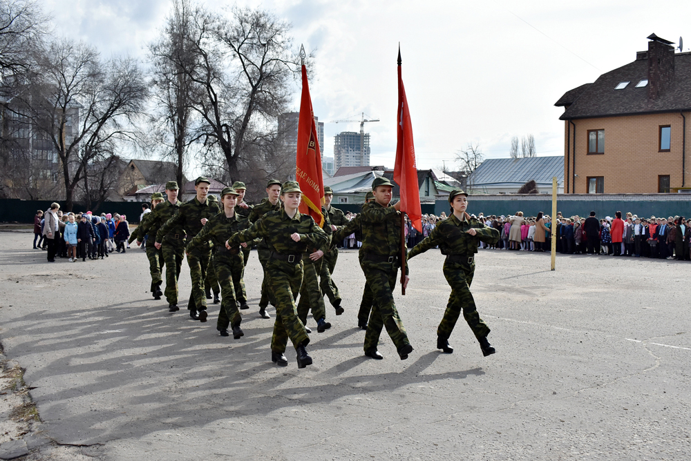 На плацу школы № 13 стартовала военно-патриотическая акция «Равнение на Знамя Победы».