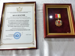 Председатель областного Совета ветеранов генерал - майор Станислав Ходаковский тепло поздравил региональное отделение Фонда с 10-летием и по поручению губернатора Воронежской области Александра Гусева наградил почетным знаком «Благодарность от земли Воронежской».