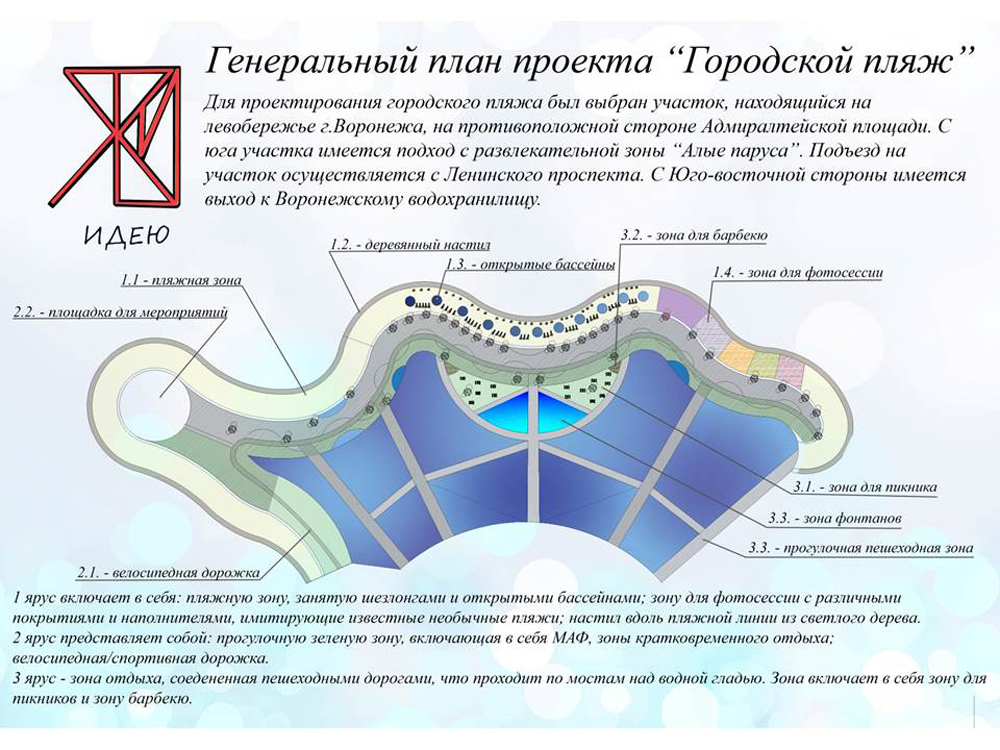 Исследовательские работы студентов, которые были представлены главе города, касаются самых разных направлений. Это и новые форматы ярмарочных площадок, например, «Мини-рынок «Точка» (открытое эко-пространство) и «Славянская деревня» (эко-рынок с фермерской продукцией). Рассказали молодые архитекторы и об их видении развития Северного леса, о создании «Этнодеревни» (именно так ребята видят вторую очередь Воронежского центрального парка). Они хотели бы создать «Парк на воде», городской пляж нового формата, лабиринт «Общение» – общественное универсальное пространство и даже «Лунариум» (выставочное интерактивное пространство).