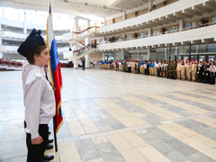 В ходе линейки обучающиеся Воронежской кадетской школы им. А. Суворова развернули 16-ти метровую георгиевскую ленту. К ним присоединились 200 воспитанников военно-патриотических клубов и юнармейских отрядов. В память о подвиге советского солдата в годы Великой Отечественной войне в небо взлетели оранжево-черные шары.