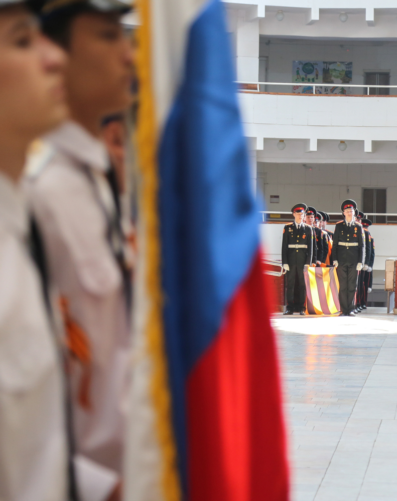 В ходе линейки обучающиеся Воронежской кадетской школы им. А. Суворова развернули 16-ти метровую георгиевскую ленту. К ним присоединились 200 воспитанников военно-патриотических клубов и юнармейских отрядов. В память о подвиге советского солдата в годы Великой Отечественной войне в небо взлетели оранжево-черные шары.