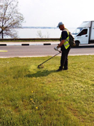 С использованием мотокос типа STIHL FS250 и Husqvarna операторы косят траву на газонах, в парках, скверах и других озелененных территориях.