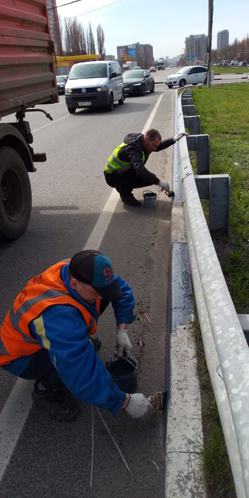 В Коминтерновском районе по поручению руководителя управы Юрия Бавыкина полным ходом идет покраска бортового камня и металлических барьерных ограждений.