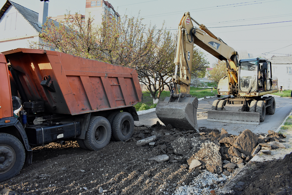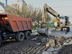 Так на переулке Каховский рабочие разбирали пришедшее в негодность твердое покрытие и готовили основание для укладки нового асфальта.