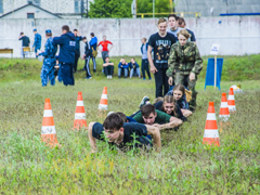 Одним из самых сложных состязаний для участников остается полоса препятствий, включающая в себя преодоление участка ползком, метание гранаты, кочки, лабиринт и бег 500 метров. Впрочем, ни грязь, ни другие трудности школьников не пугают.