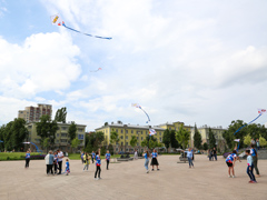 После такой весёлой разминки под аплодисменты воронежцев волонтёры запустили в небо воздушных змеев.
