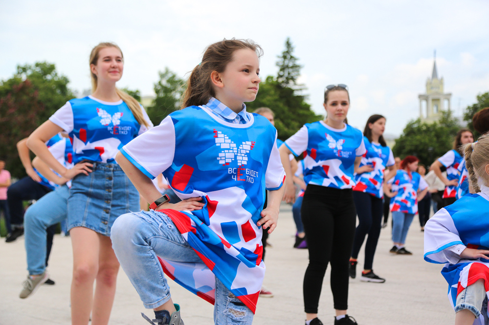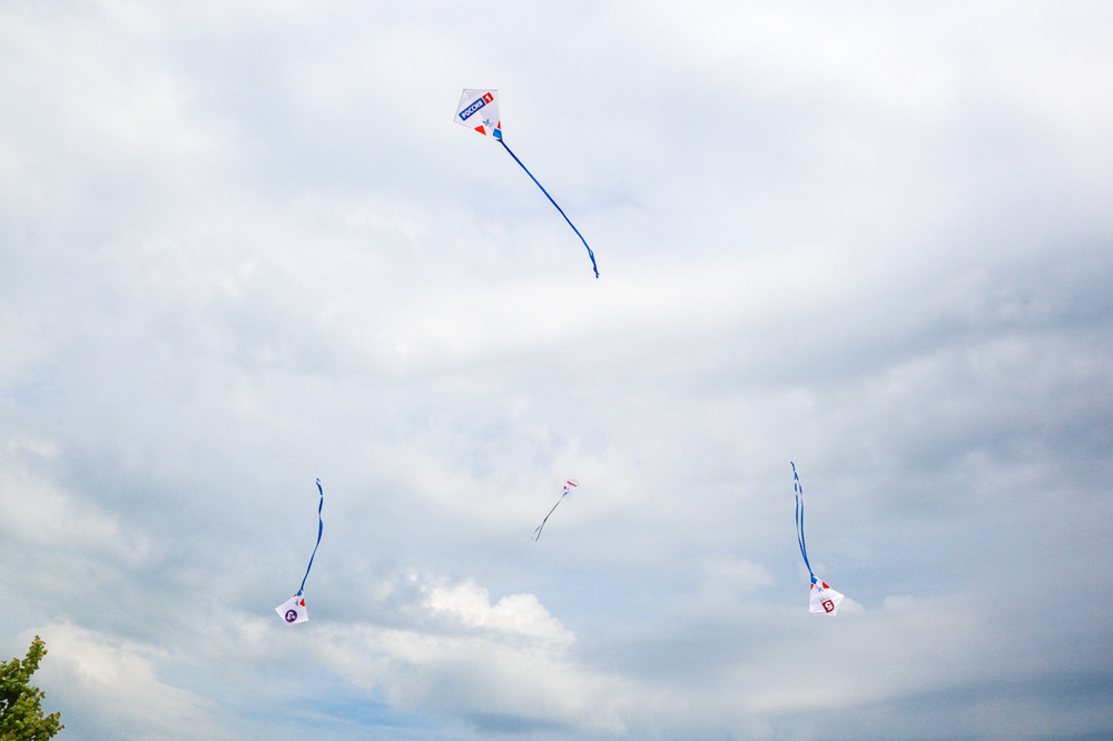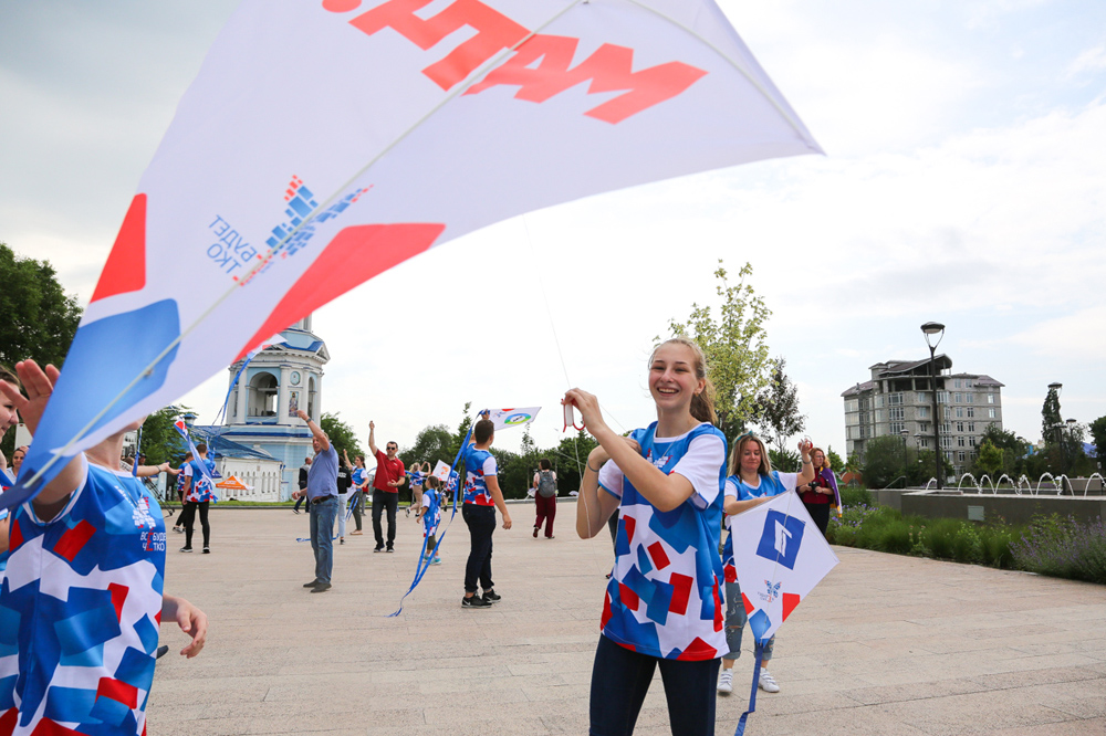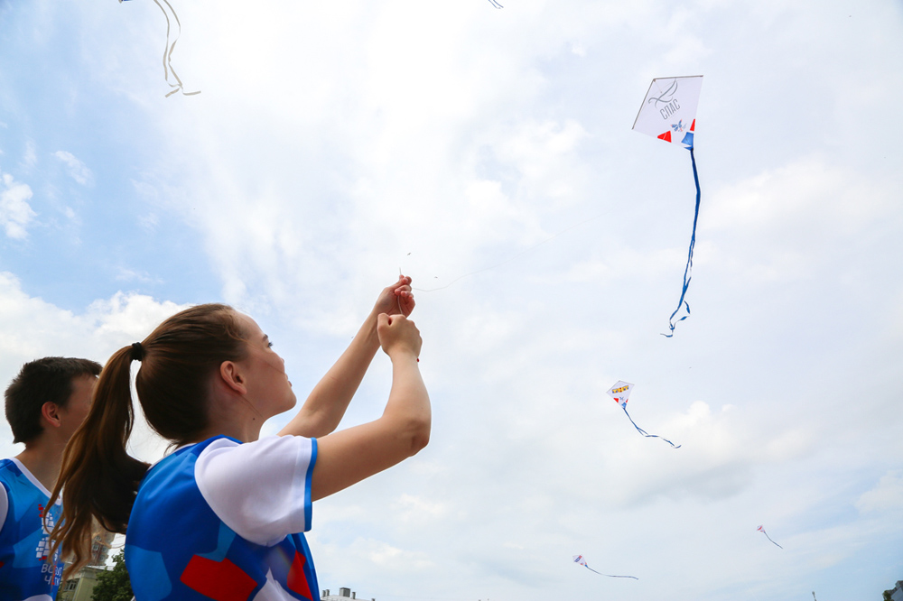 После такой весёлой разминки под аплодисменты воронежцев волонтёры запустили в небо воздушных змеев.