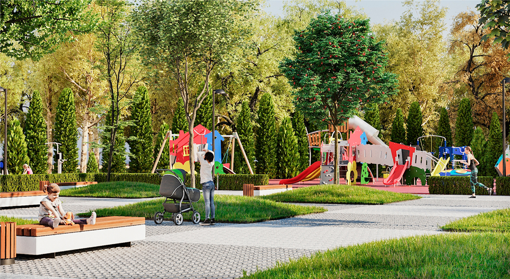 Согласно концепции на территории будет установлено детское игровое и спортивное оборудование, малые архитектурные формы, проведена высадка 18 кленов и организован газон, создана живая изгородь, уложена плитка и установлены скамейки. Территория будет освещена и оснащена системой видеонаблюдения. С параметрами благоустройства можно будет ознакомиться на информационном паспорте, который установят в месте проведения работ в самое ближайшее время.