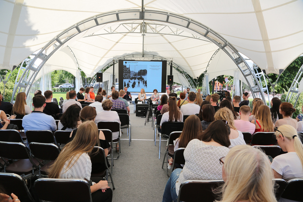 На Советской площади работали сразу несколько площадок, где были организованы дискуссии, лекции, выставки и презентации.