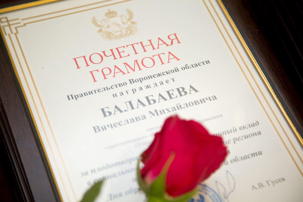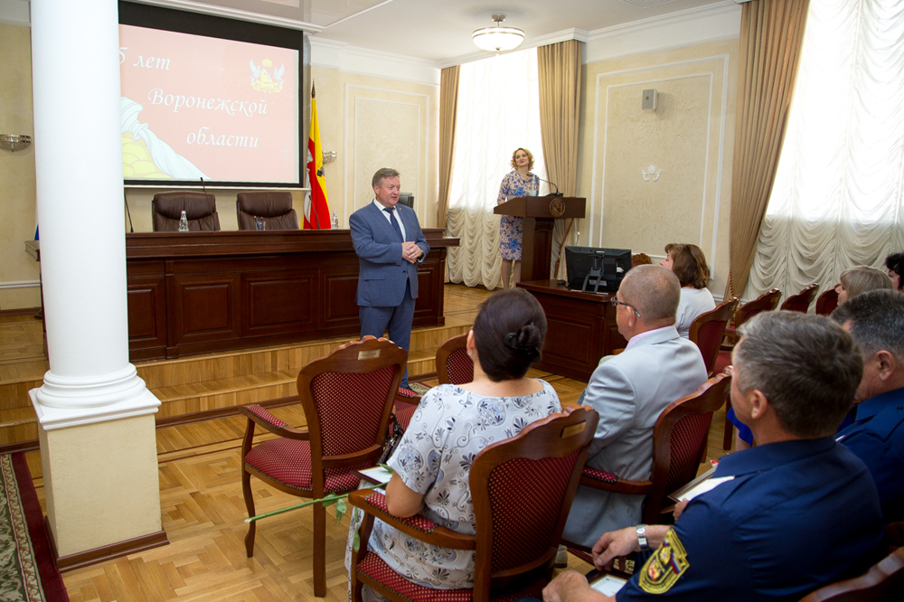 В честь 85-летия в мэрии прошло торжественное мероприятие, на котором заместитель главы администрации – руководитель аппарата Сергей Глазьев вручил Почётные грамоты правительства Воронежской области и Благодарности губернатора жителям Воронежа, которые были представлены для награждения администрацией города. Всего поощрения удостоились 27 человек.