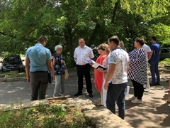 Руководитель управы Юрий Бавыкин дал ряд поручений, касающихся грядущего благоустройства. А именно, обрезки кустарников, вырубки поросли и покосу травы на территории сквера.