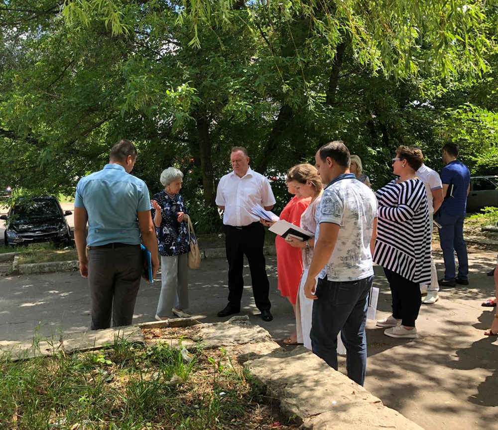 Руководитель управы Коминтерновского района Юрий Бавыкин провел выездное совещание в сквере имени командующего Воронежским фронтом генерала Николая Ватутина на Московском проспекте, 97 «с».