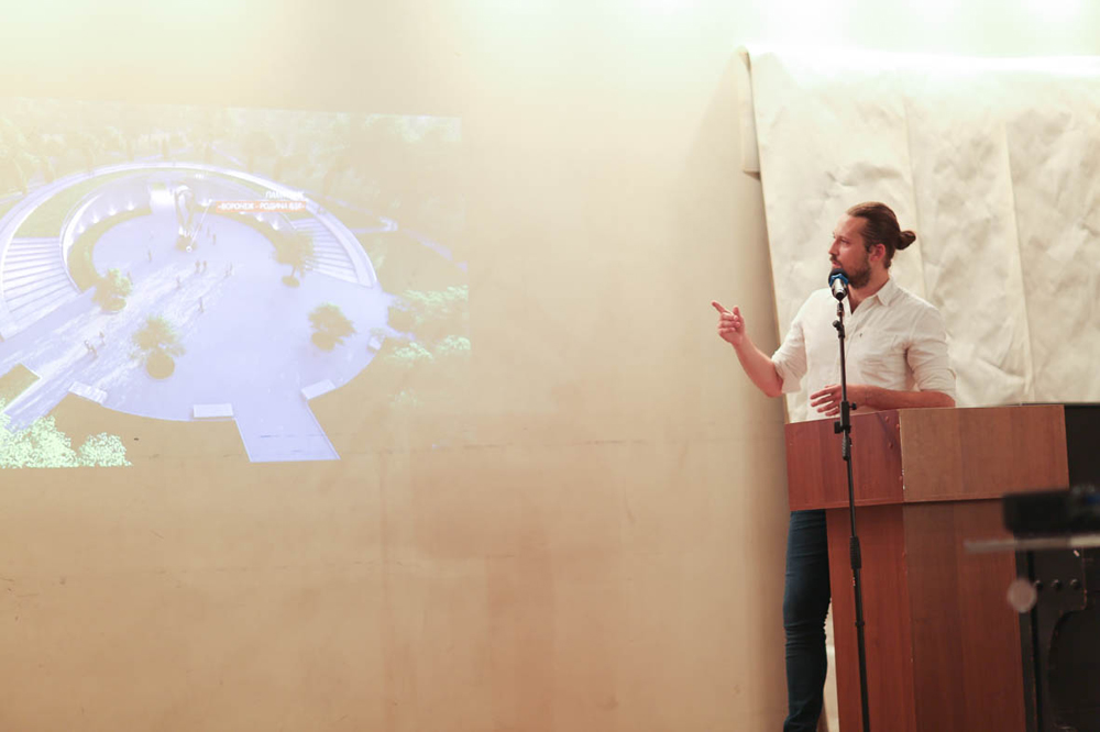 Первым выступил автор концепции музея Воздушно-десантных войск Сергей Забнин. Сергей Александрович отметил, что в своем проекте он стремился создать объект, который не будет менять структуру парка, а органично впишется в нее.