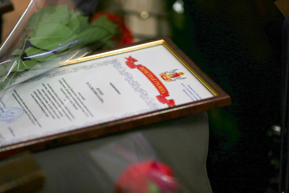 Также в ходе мероприятия чествовали и ветеранов педагогического образования, среди которых была и Татьяна Георгиевна Гаула, проработавшая 25 лет директором гимназии №9. Ее имя внесли в Книгу Почета системы образования городского округа город Воронеж. Свидетельство, подтверждающее этот факт, Татьяне Георгиевне вручила Надежда Савицкая.