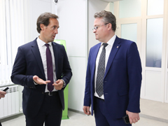 Следующим пунктом объезда стал Центр обслуживания клиентов на улице Кольцовской, 78. В здании ранее располагался административный персонал «Воронежской теплосети». Сейчас помещение отремонтировано, оснащено необходимым оборудованием и уже почти готово принимать первых посетителей, осталось только установить часть мебели. Стоит отметить, что это второй центр обслуживания клиентов «Квадры». Ещё один расположен на улице Лебедева, 2. Открытие дополнительного офиса потребовалось после того, как значительно увеличилось количество абонентов, к которым добавились жители 1599 домов, и справляться с резко возросшей клиентской базой прежними ресурсами стало крайне сложно. Руководитель воронежского филиала ПАО «Квадра» Виктор Назаров отметил, что главный источник финансирования программы модернизации теплоэнергетического хозяйства, зданий и сооружений – средства инвестора.