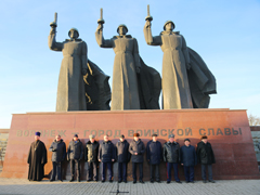 Участники церемонии почтили память погибших защитников города минутой молчания, а после возложили к мемориальному комплексу цветы и венки.