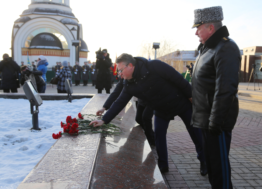Участники церемонии почтили память погибших защитников города минутой молчания, а после возложили к мемориальному комплексу цветы и венки.