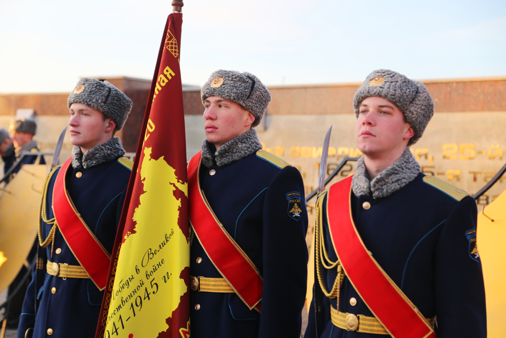 В завершение церемонии духовой оркестр Военно-воздушной академии исполнил торжественный марш, под который строем прошел почетный караул. Участников события пригласили посетить обзорную экскурсию в Зале Памяти мемориального комплекса.