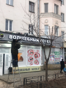 Ранее собственнику были выписаны уведомления о необходимости демонтажа, а также собственник был привлечен к административной ответственности, согласно ст.33.1 Закона Воронежской области «Об административных правонарушений на территории Воронежской области» № 74-ОЗ от 21.12.2003г. На 11 марта 2020г ответственными лицами был назначен принудительный демонтаж. Однако собственник приступил к самостоятельному демонтажу достаточно емких и сложных информационных конструкций. Чтобы избежать непрезентабельного внешнего вида во время проведения работ, одновременно производится наружная отделка фасада.