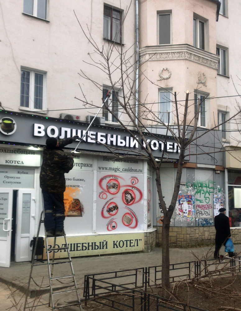 Ранее собственнику были выписаны уведомления о необходимости демонтажа, а также собственник был привлечен к административной ответственности, согласно ст.33.1 Закона Воронежской области «Об административных правонарушений на территории Воронежской области» № 74-ОЗ от 21.12.2003г. На 11 марта 2020г ответственными лицами был назначен принудительный демонтаж. Однако собственник приступил к самостоятельному демонтажу достаточно емких и сложных информационных конструкций. Чтобы избежать непрезентабельного внешнего вида во время проведения работ, одновременно производится наружная отделка фасада.
