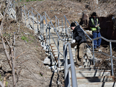 С наступлением весеннего периода сотрудники МБУ «Комбинат благоустройства Ленинского района» производят очистку нагорных лестниц от мусора, удаление поросли и сухостоя вокруг них.
