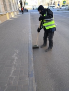 Для проведения работ задействована различная техника: фронтальные погрузчики, трактора со щетками, самосвалы и другая специализированная техника. На тротуарной части комбинатом благоустройства Левобережного района используется малогабаритная подметальная техника.