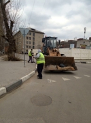 В дневную смену на магистрали района вышло 42 единицы техники комбината благоустройства и 52 работника ручной уборки.
