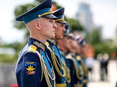 В завершение церемонии военный оркестр исполнил гимн Российской Федерации, а затем почетный караул прошел торжественным маршем.