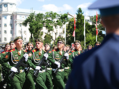 - Славные боевые традиции героев-фронтовиков достойно продолжают сегодняшние защитники Отечества. Они честно выполняют свой воинский долг, надежно стоят на страже безопасности страны. Сегодня на площади в торжественном строю стоят военнослужащие гарнизона, курсанты, спасатели, настоящие патриоты своей Родины, избравшие своим призванием службу на благо Отечества, - произнес Андрей Иванаев и пожелал собравшимся крепкого здоровья, благополучия и мирного неба над головой.