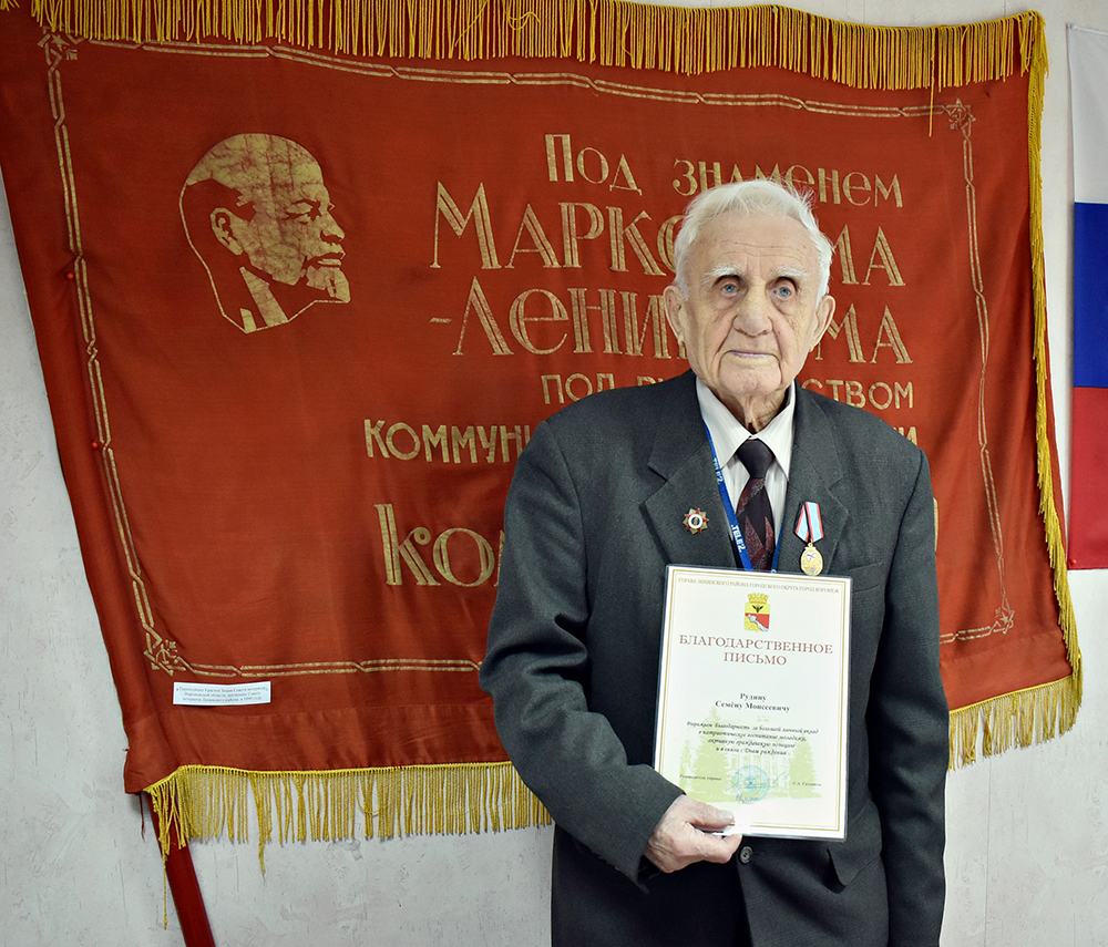 Семен Моисеевич Рудин за четыре дня до начала войны закончил 10-й класс. На фронт призван 1 августа 1941 года, служил в саперном батальоне, в составе пехоты прошел от Днепра до Сталинграда. Под Красноградом был контужен, но продолжил боевой путь. Войну закончил на Дальнем Востоке в сентябре 1945 года. Принял участие в уникальной операции советских войск по преодолению пустыни Гоби и Хинганского хребта. Передовые батальоны трех фронтов в крайне неблагоприятных погодных условиях летних дождей двинулись на территорию противника. В результате этого выдающегося наступления Красная армия сумела захватить в плен более 200 тысяч японцев, много техники и оружия, а также были освобождены Южный Сахалин и Курильские острова. За образцовое выполнение задания на фронте борьбы с японскими агрессорами, проявленную при этом доблесть и мужество Рудин С.М. награжден орденом Красной Звезды. Также имеет ордена Отечественной войны, Октябрьской Революции, золотую медалью ВДНХ 1978 года и многие другие.