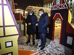 Он обратил внимание руководителей структурных подразделений на то, что площадь привлечет, как и в прошлом году, много людей. Основными ее посетителями, конечно же, станут дети. Для них в этот раз предусмотрены не только фотозоны, но и территория для игр в виде сказочного города. Вадим Кстенин поручил проверить безопасность и удобство подъемов и спусков в детском городке.Наряду с новым элементами площади, такими как соединенные мостиком домики Кая и Герды, сани и трон Снежной Королевы, на площади остались уже полюбившееся в прошлом году карусель, солдатики и балерины. Глава отметил, что эти сказочные герои могут появиться на площади и через год.