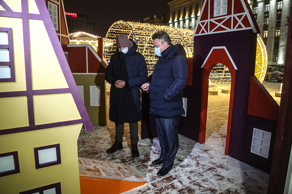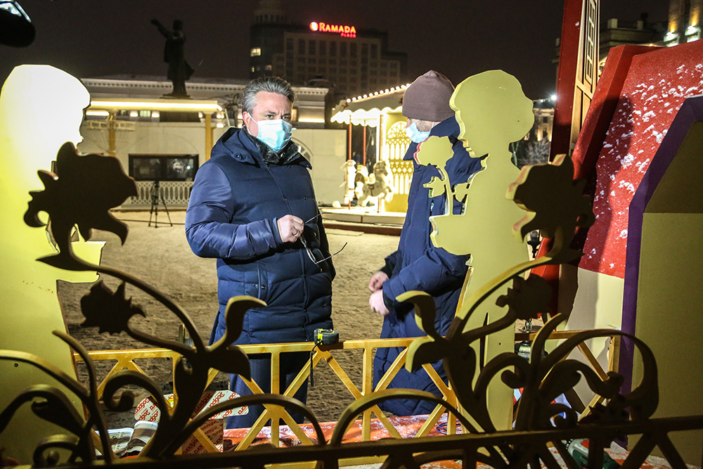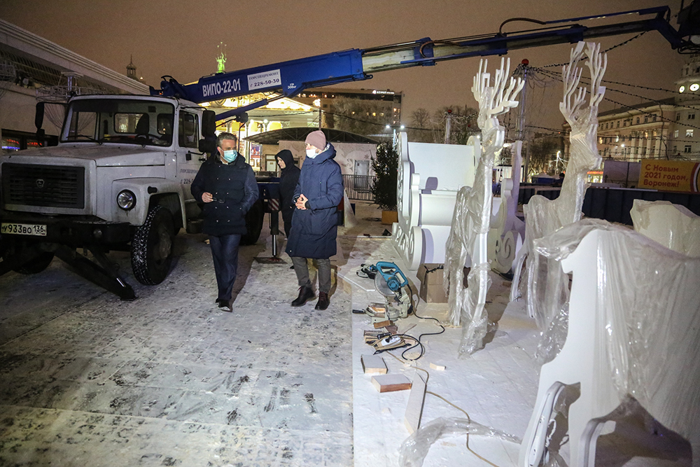 Глава Воронежа Вадим Кстенин оценил ход работ по новогоднему украшению площади Ленина