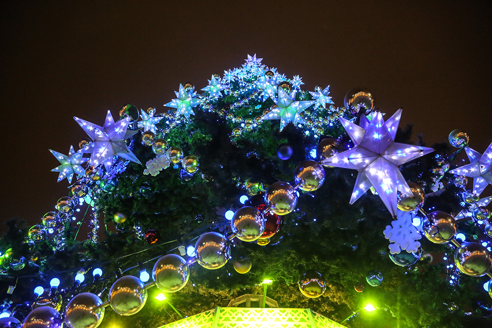 Главе города доложили, что 25 декабря монтаж оформления будет завершен и вечером пройдут пуско-наладочные работы всего оборудования, уже в субботу с 10:00 площадь откроется для посещения, а вечером засияет всеми огнями.