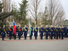 В завершении церемонии оркестр исполнил гимн Российской Федерации, а почетный караул прошел торжественным маршем.