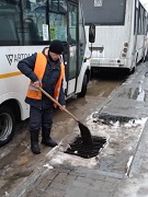 В связи с погодными условиями в Центральном районе продолжается работа по очистке решеток ливнеприёмных колодцев. Сотрудники комбината благоустройства района очищают ливневки от снега и льда, которые не дают в полной мере пропускать воду. Отдельное внимание уделяется пешеходным переходам и остановкам общественного транспорта.