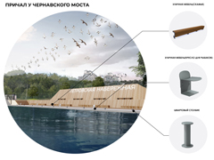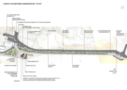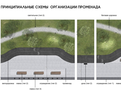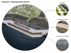 Главный архитектор проекта Екатерина Белоус представила схему планирования проектируемого участка набережной и уже проработанную визуализацию части объектов.Основной акцент сделан на зоны променада, так как проектируемая территория – привычная всем прогулочная площадка у воды. Пешеходные дорожки могут быть оснащены оригинальными малыми архитектурными формами (скамейками с высокими спинками), ограждением с подсветкой, а утраченные элементы ограждения можно заменить светопрозрачными.