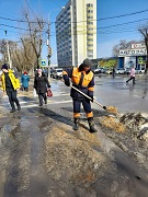 После перехода температур с минуса на плюс основными задачами комбината стала посыпка и очистка тротуаров, подходов к пешеходным переходам, откачка талых вод и очистка ливнеприемников.