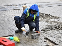В Ленинском районе продолжается ремонт тротуаров.Используя благоприятные погодные условия, сотрудники районного комбината благоустройства выполняют фрагментарный ремонт плиточного покрытия тротуаров. Это происходит в местах, где с течением времени отдельные элементы покрытия сильно изнашиваются и требуют замены.
